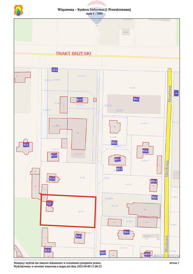 Działka posiada dogodny dojazd bezpośrednio z Traktu Brzeskiego