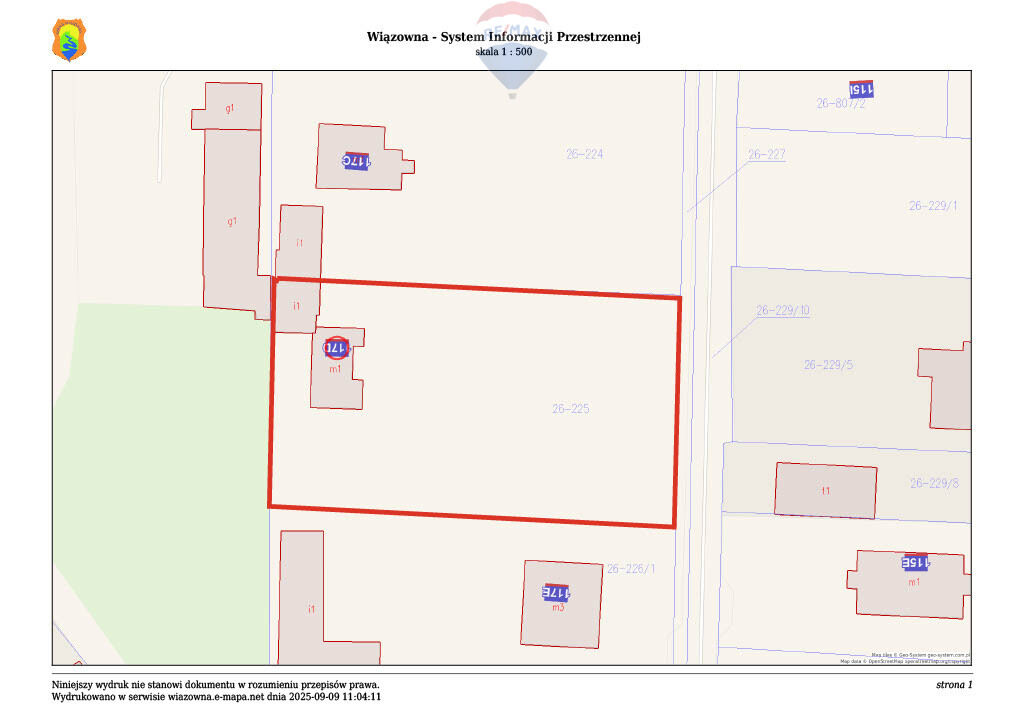 otwocki). Teren ogrodzony, zadbany o regularnym kształcie (ok. 34 m